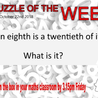 A real quickie this week! Well done to Hitarth Kakumanu of 8E for solving last week's puzzle!!
