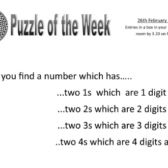 Have a go at this week’s puzzle. Put your solution on a piece of paper and drop it in one of the puzzle boxes at the back of your classroom before 3.20pm on Friday. Correct answers will collect 2 silver stars, whilst the best solution will receive three! Click on the attachments to see this week's puzzle and see the answer and winners from last time.
