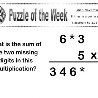 Try our weekly Maths puzzle of the week. Pupils can put their solutions into the boxes at the back of each Maths classroom for marking.