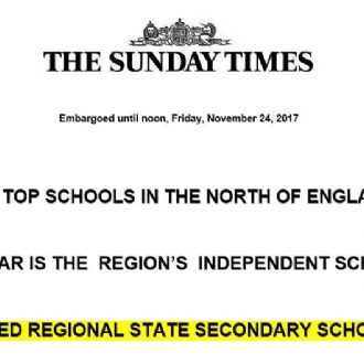 We are delighted to announce that the Sunday Times has named us 'Top School of the North'!